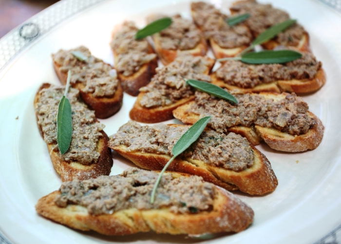 These crostini are the typical Tuscan appetizer and are a must on festive days or special occasions. Its taste is strong: you either love it or you avoid it. It is toasted Tuscan bread on which a pâté made from chicken liver, onion, celery, carrots, capers and a little butter is spread on it .