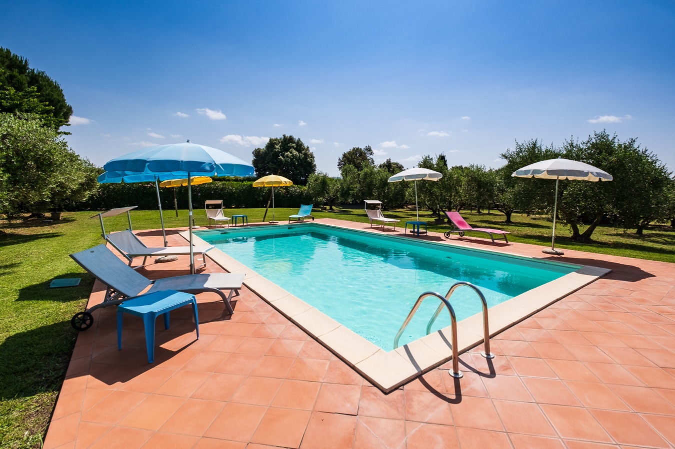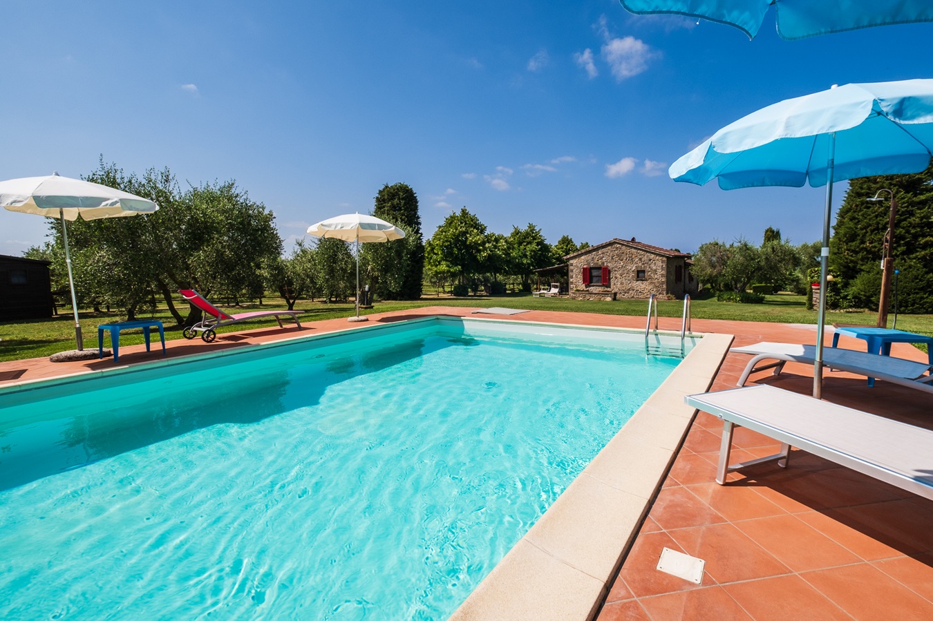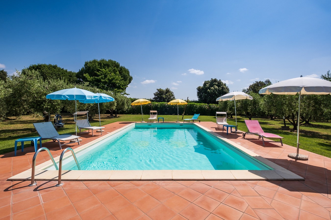 Eine weitere Annehmlichkeit ist die herrliche Poolanlage (11 x 6 Meter) mit Sonnenwiese und Schattenzone, die ausreichend Raum und Ruhe zum Entspannen bietet. Darüber hinaus ist die Lage des Hauses absolut ideal und in Kürze erreicht man nicht nur das Meer, sondern auch Bolgheri, wo die berühmten Rotweine erzeugt werden sowie Golfo di Baratti mit seinen herrlichen Naturparks etc.
