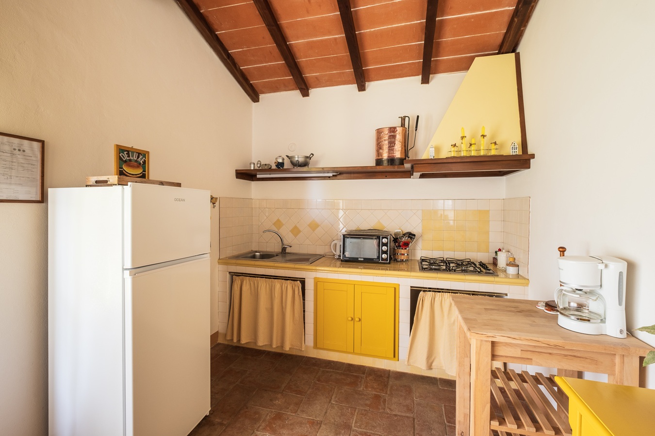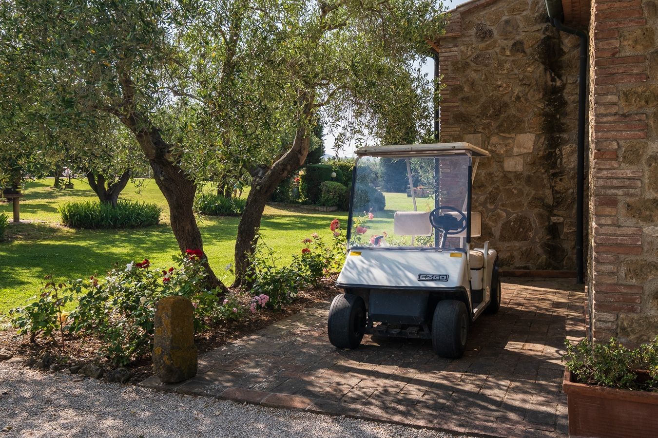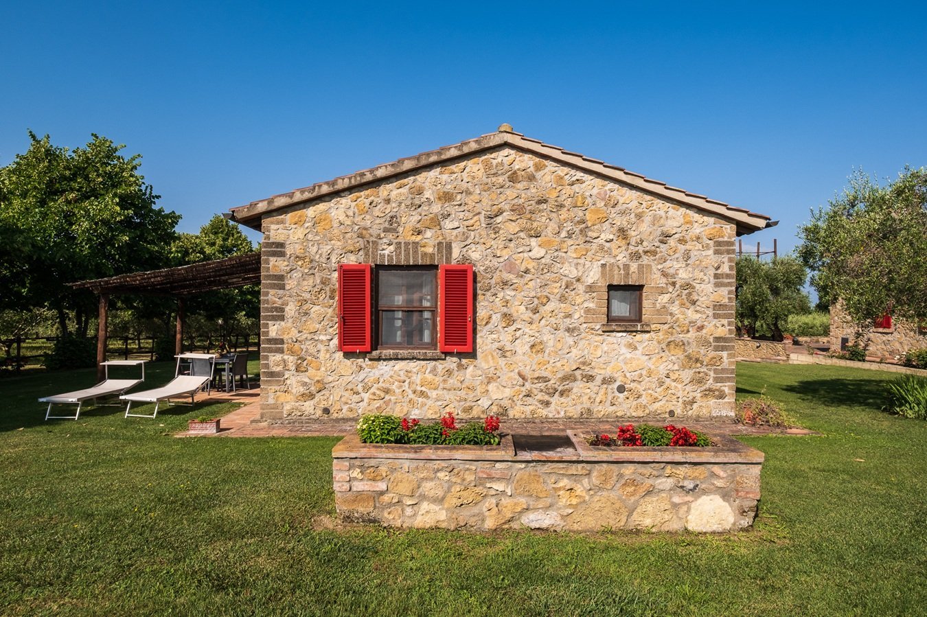Den Gästen steht ein großzügige privater Außenbereich (überdachter Freisitz, Grill u. Garten) mit Sonnenliegen, und Gartenmöbeln, umgeben von einer weitläufigen Gartenanlage, zur Verfügung. Das Häuschen „Casina“ liegt, umgeben von Olivenhainen, ca 300 Meter von den Ferienwohnungen entfernt. Die Räume vermitteln Behaglichkeit, sind luftig modern und und man fühlt sich einfach wohl. Ein kleines Gemüsebeet, wo sich auch die Gäste bedienen dürfen und das hier erzeugte hervorragende Olivenöl, erhöhen den Reiz dieser kleinen Ferienoase!