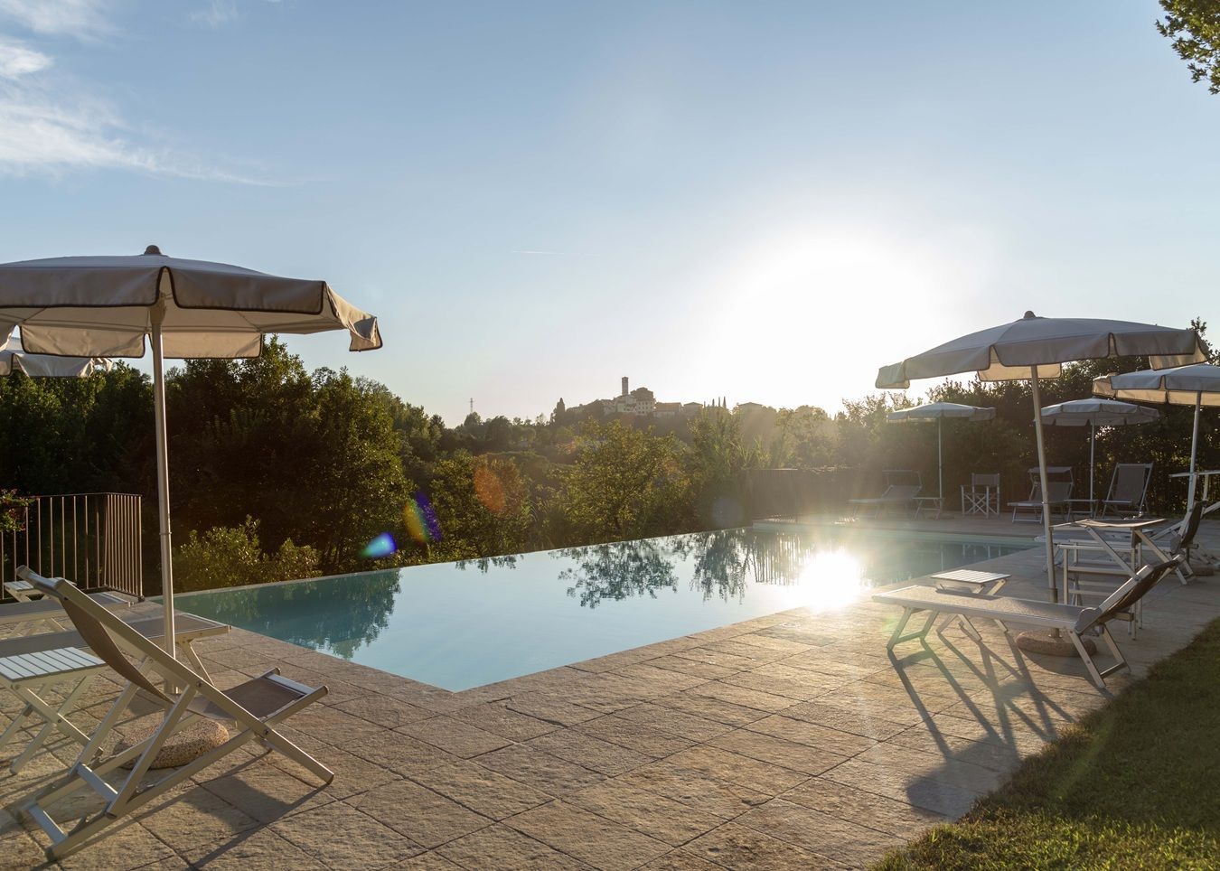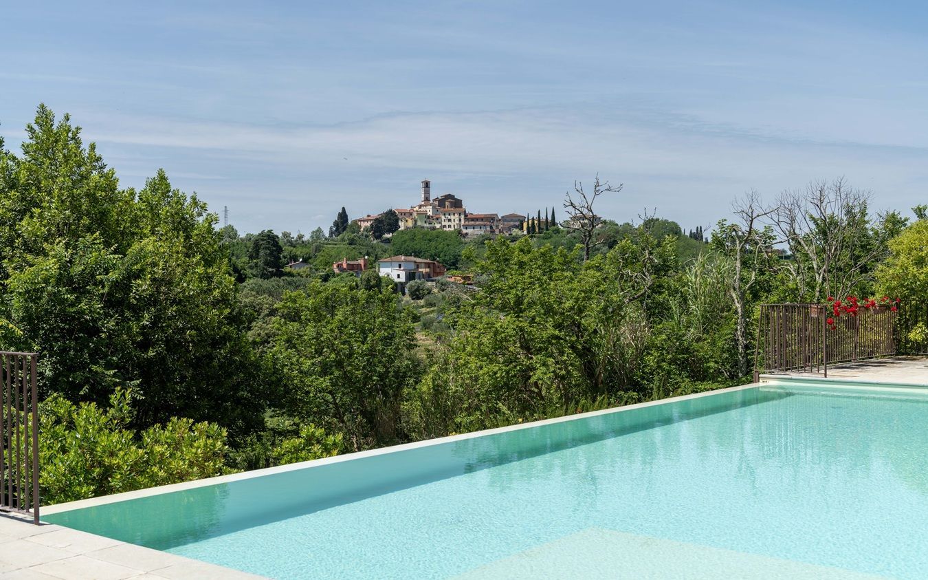 Einige Meter vom Haus entfernt, liegt der herrliche Infinity-Pool (12 x 6 Meter), der in den heißen Sommermonaten eine erfrischende Abwechslung bietet. Eine Landstraße führt am Haus vorbei, ohne jedoch den Charme des Anwesens zu trüben. Die typisch toskanisch geprägte geschmackvolle Struktur in hellen Farben, verbunden mit gehobenem Komfort (Klimaanlage, Fußbodenheizung etc), verleihen dem Haus eine ganz besondere Note!