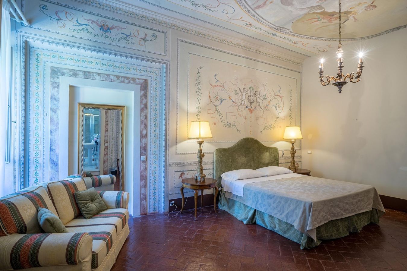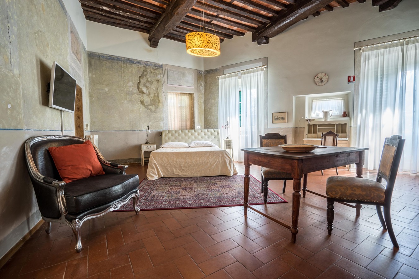 Herrliche antike Villa (16. Jh), die malerisch auf einer Anhöhe thront und das Herz eines mittelterlichen Weilers bildet, der zwischen Lucca und Pistoia liegt. Das Haus ist eine romantische Villa mit 22 Zimmern und 3 Wohnungen; jedes Gästezimmer /Wohnung ist individuell und klassisch gestaltet. Mit Flair und Phantasie, in Kombination von antiken und modernen Elementen, wurde eine Atmosphäre gehobenen Stils geschaffen. Dabei wurden Aspekte aus der Geschichte der Villa und des toskanischen Erbes berücksichtigt. Fresken-Malereien aus dem 18. Jh, sowie stilvolles Mobiliar vervollständigen dieses historische Ambiente.