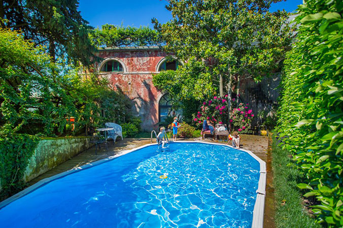 Der Pool ist von April bis Ende Oktober geöffnet und liegt ca 50 Meter von der Villa entfernt.