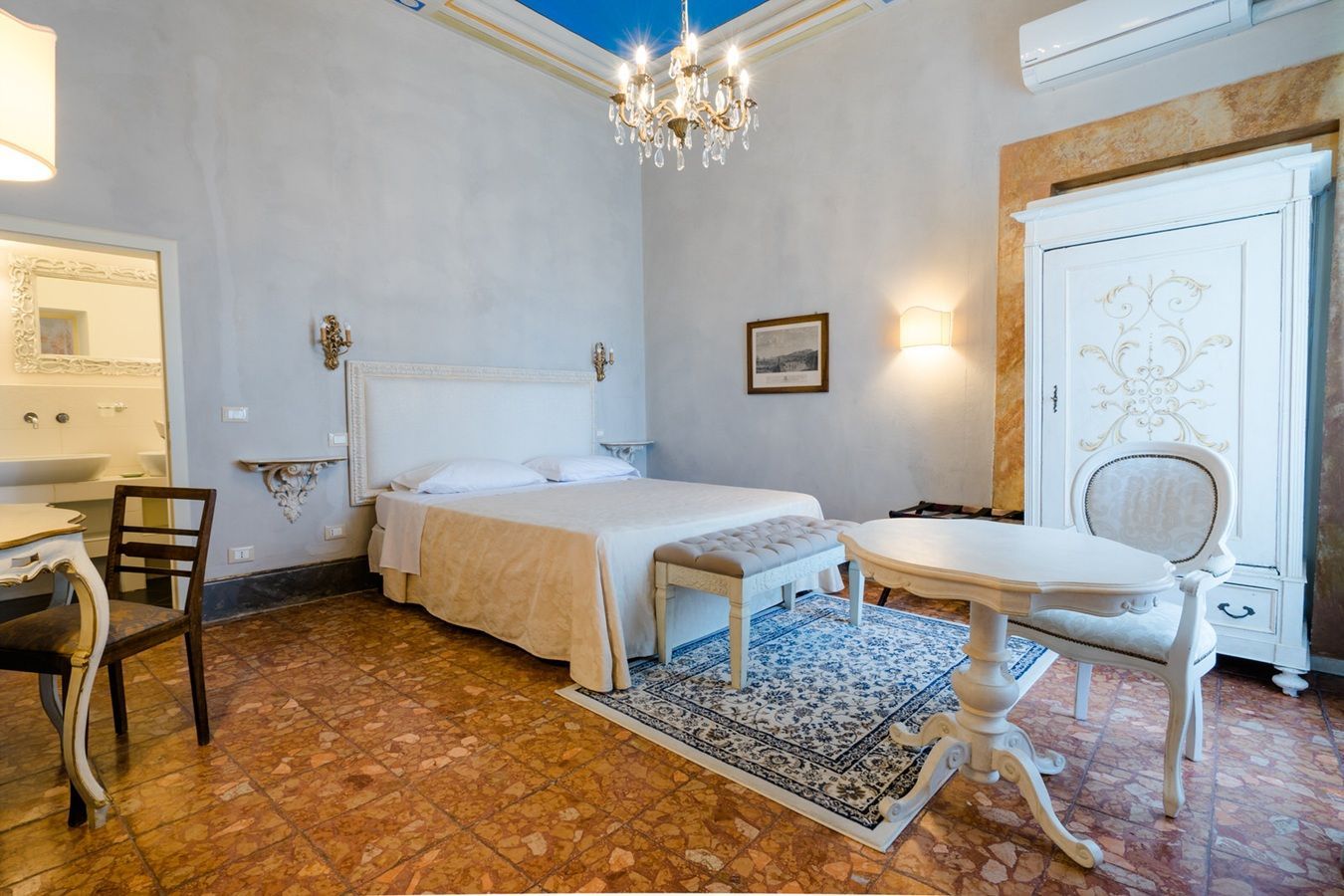 ca. 30 m2 -- OG Doppelzimmer mit Original-Freskenmalerei aus dem 18. Jhrh, Panoramablick; angeschlossenes Badezimmer (Badewanne, Haartrockner und Pflegeprodukte)