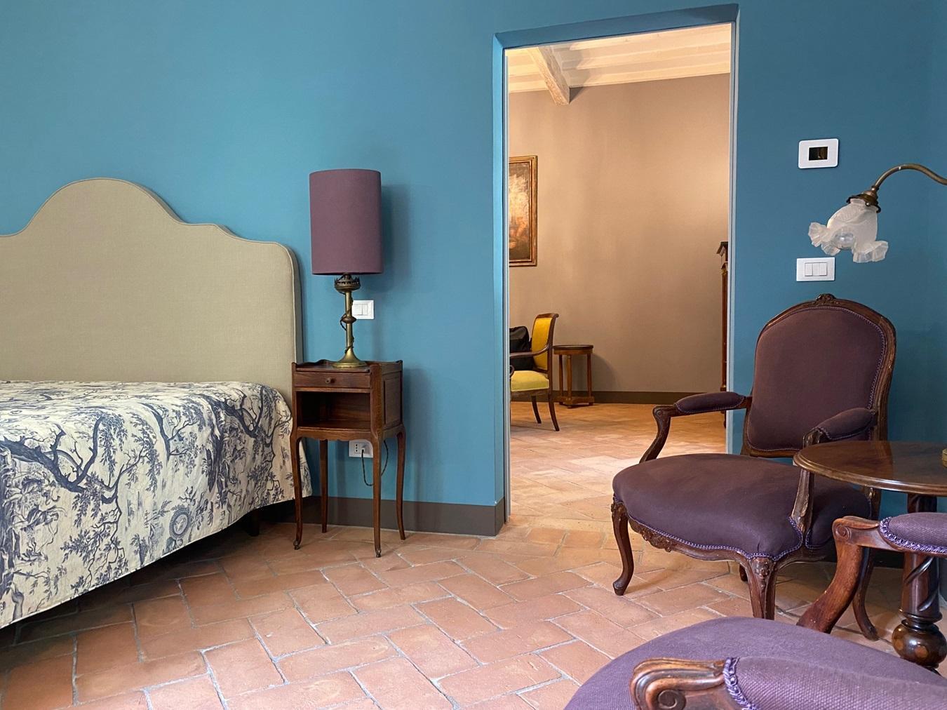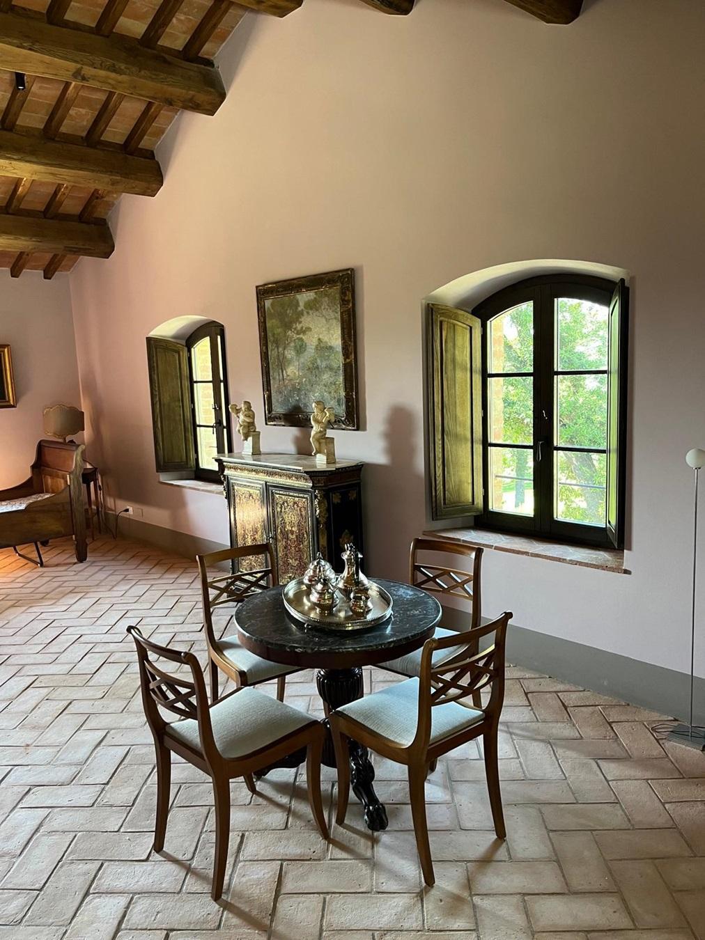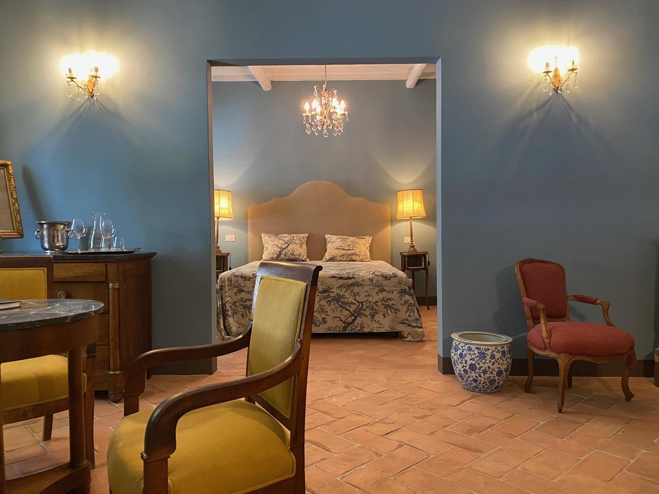 Das Anwesen öffnete nach umfangreichen Renovierungsarbeiten, die den alten Gemäuern heute wieder ihren ursprünglichen Glanz verleihen, vor ca 3 Jahren seine Pforten und bietet B&B Suiten, ein kleines Ferienhaus plus zwei Ferienwohnungen an. Alles ist sehr privat gehalten, Einrichtung und Ausstattung sind luxuriös, äußerst geschmackvoll und komfortabel und lassen keine Wünsche offen. Ein Italienisches Frühstück wird den Gästen morgens gebracht und auch ein täglicher Reinigungsservice sind inklusive. Ein weiteres Highlights ist die Weinverkostung, inklusive Tour des Weinguts plus Mittagessen; der Flair des feinen Porzellans (18 Jhr) und Silberbestecks, unterstreicht diese besondere Note. Ein einmaliges Erlebnis! Das Weingut hat in wenigen Jahren bereits verschiedene Auszeichnungen erhalten und daher ist eine Verkostung ein “Must”.