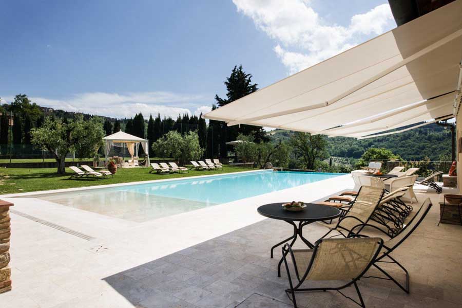 Kleines familiengeführtes Weingut, zwischen Florenz und Siena gelegen, mit sehr guten Serviceleistungen vor Ort! Im Ganzen gibt es 6 stilvolle Appartments plus ein Haus; alles wurde im typisch toskanischen Stil, mit Geschmack, Liebe zum Detail und  Komfort eingerichtet. Ein Tennisplatz und Panoramapool (20 x 8 M.) unterstreichen die besondere Note. Das sehr gepflegte Anwesen, ein ehemaliges Gehöft, wurde aufwendig und mit hochwertigen Materialen restauriert. Das Ausstattungsniveau ist hoch und die sehr schönen privaten Außenbereiche als auch die Kamine, Küchenausstattung, Frühstücksservice und weitere Details, bezeugen dies.