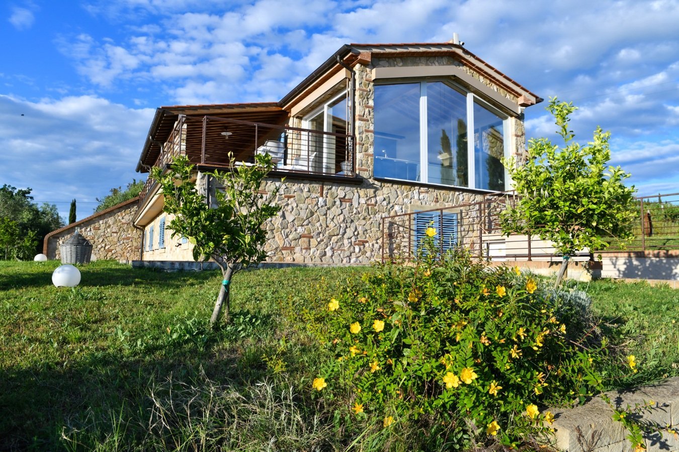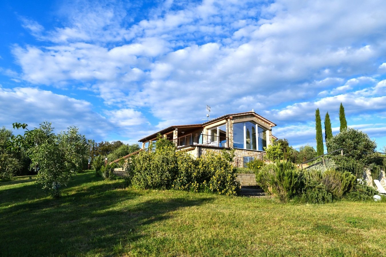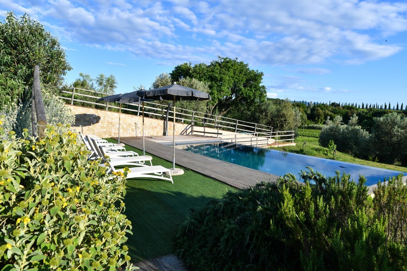 Villa Etrusca bietet ein rundum überwältigendes Ambiente: einen phantastischen Ausblick, umgeben von Weinbergen und Olivenbäumen und eine moderne geschmackvolle Ausstattung, in nur 10 Minuten erreicht man das Meer! Die Lage könnte nicht besser sein und man genießt die Vorteile einer ruhigen ländlichen Lage, garantierte Privatsphäre, verbunden mit gehobenem Komfort. Nach vollständiger Restaurierung präsentiert sich die Villa nun - in gekonnter Verbindung moderner Stilelemente mit typisch toskanischen, rustikalen Details - als ein Ort der Entspannung in wohltuendem warmen Flair. Das Anwesen ist, zur Freude von Hundebesitzern, komplett eingezäunt und der perfekte Ort, um sich in einem ruhigen und natürlichen Ambiente zu erholen. Zudem ist es ein nachhaltiger Platz, wo Strom aus erneuerbaren Energiequellen genutzt wird.