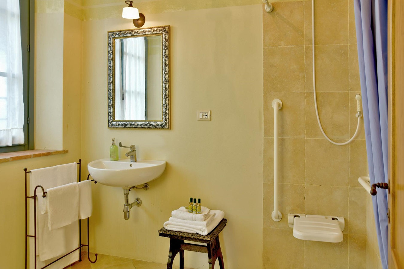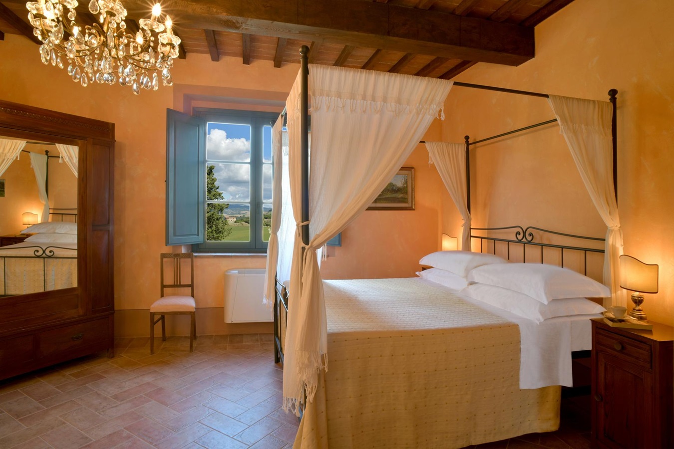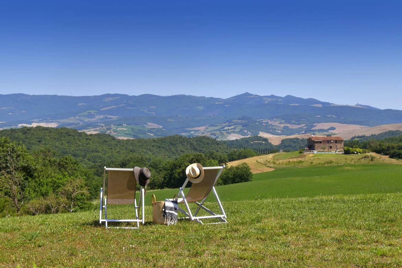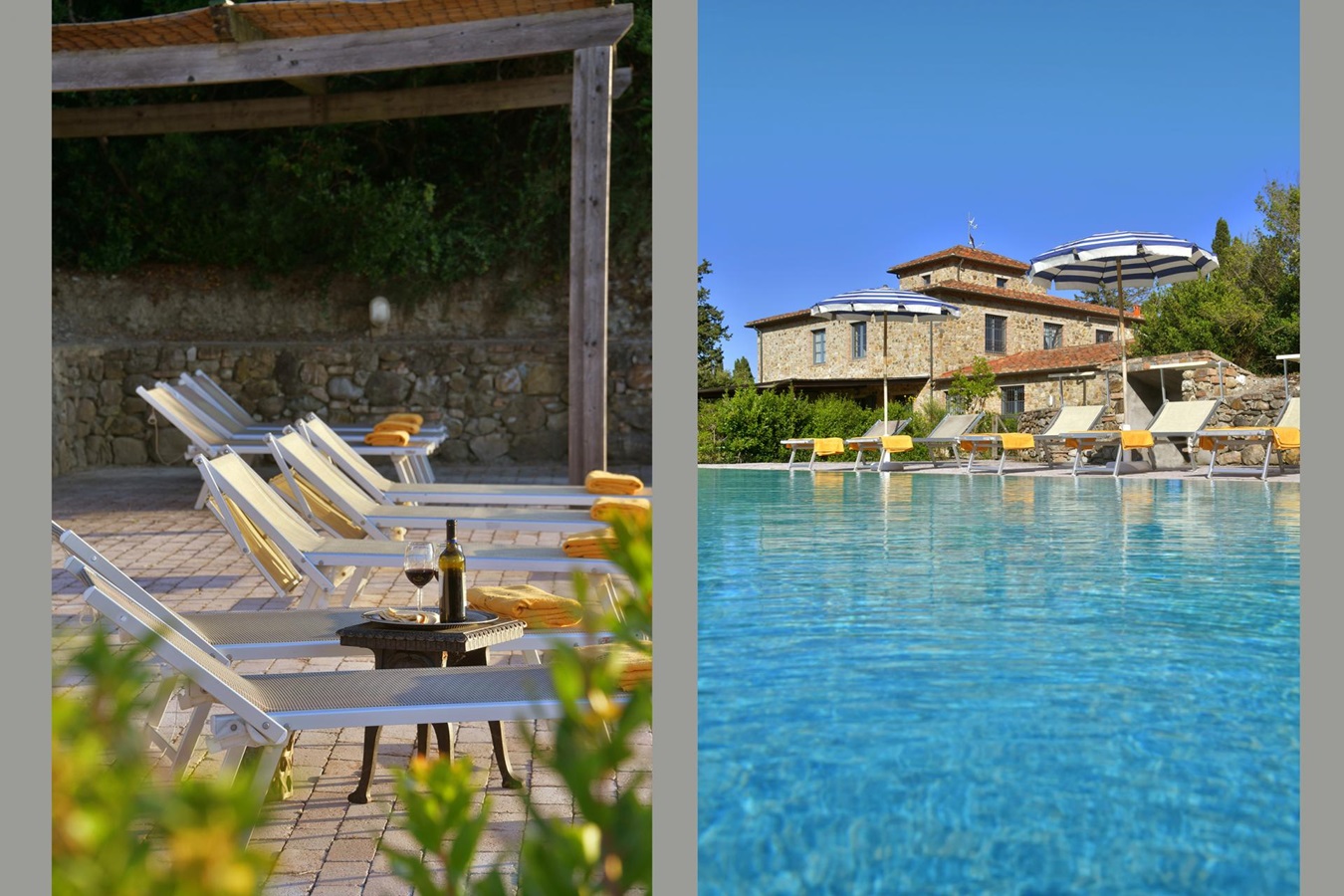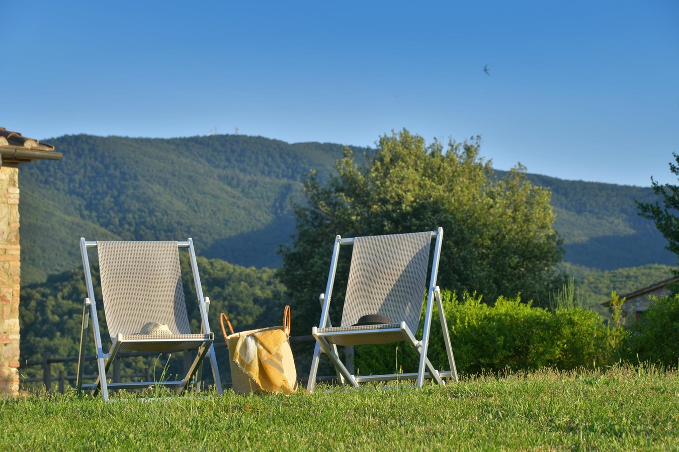 Man genießt einen großartigen Panoramablick über die umliegende Hügellandschaft und eine absolute Privatsphäre ist garantiert. Die Einrichtung und Ausstattung, stilsicher mit geschmackvollem Landhausmobiliar, Liebe zum Detail und die Kombination von antiken Holzbalkendecken, Cottoböden, Marmor-Waschbecken, in Verbindung mit modernen Küchen und Badezimmern, ist besonders gut gelungen.
