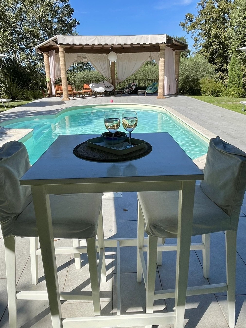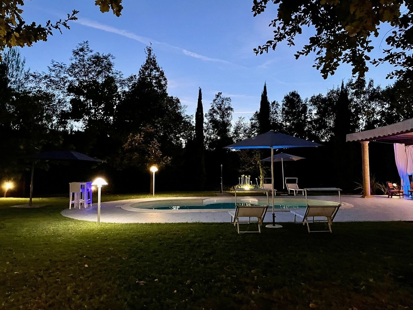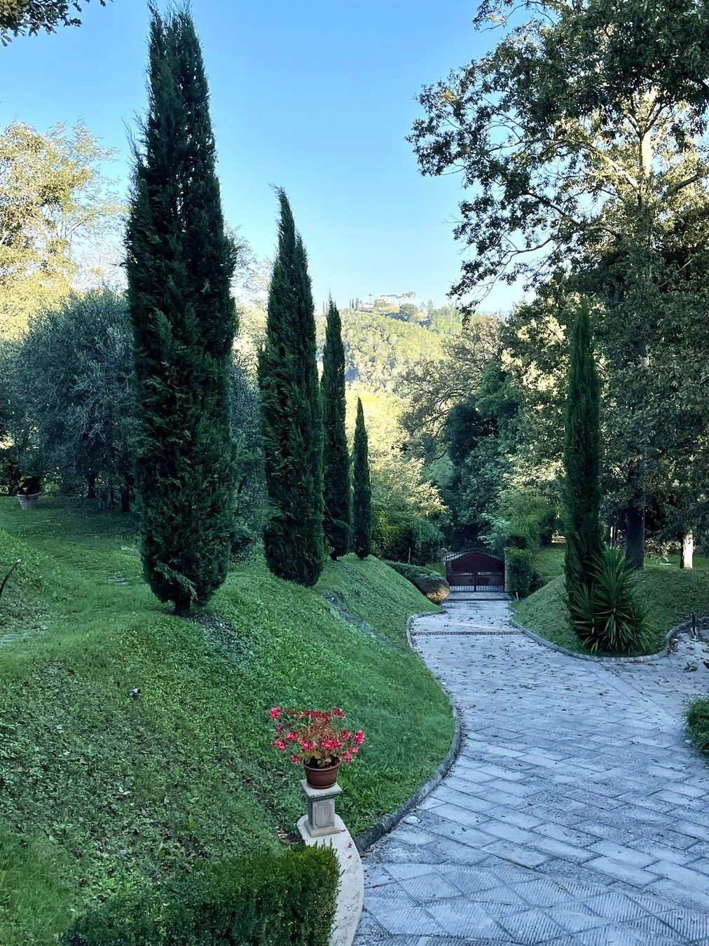 Ein elektrisches Tor öffnet sich dem Besucher und somit ist eine sehr angenehme Privatsphäre garantiert; auch die Garten- und Poolanlage steht den Gästen zur Alleinnutzung zur Verfügung. In der ausgedehnten parkähnlichen Gartenanlage befinden sich das herrliche Schwimmbad und genügend sonnig oder schattige Plätze für eine gelungene Urlaubserholung.