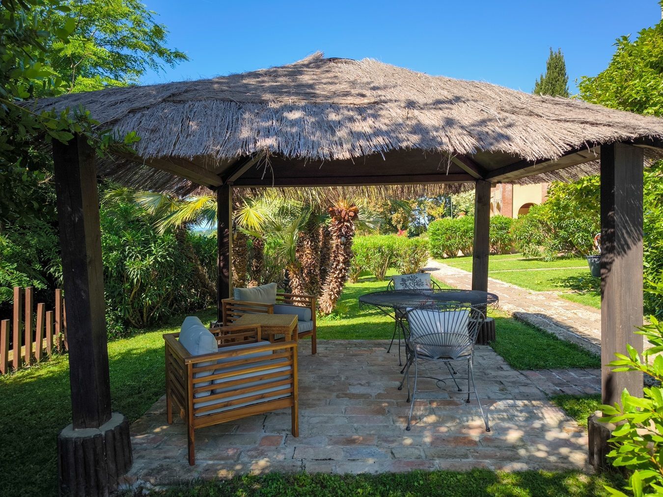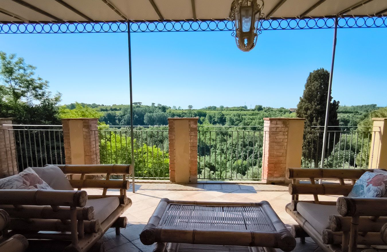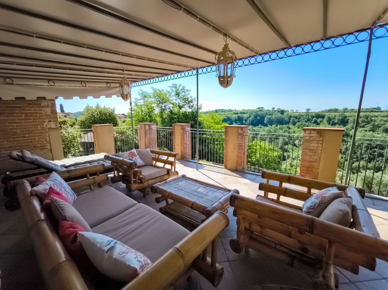 Besonders zu erwähnen ist auch der Pool (12 x 6 Meter) mit Schattenzone sowie Sonnenterrasse, die mit dem für Italien so typischem Travertino-Marmor gefliest wurde, eingebettet in einer reizvollen Gartenanlage mit Oleander, Zypressen und frischen Kräutern. Das Klima ist auch in den Wintermonaten recht mild, so dass sogar Zitronen-und Orangenbäume im Vorgarten wachsen. In Fussweite zu erreichen, gibt es ein gutes Restaurant, sowie eine kleine rustikale Trattoria, wo man auch die exzellenten Weine unserer Region kosten kann.
