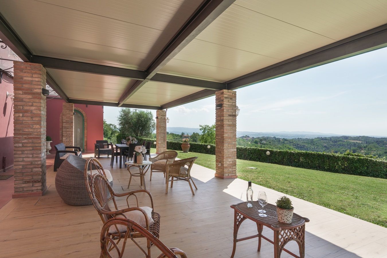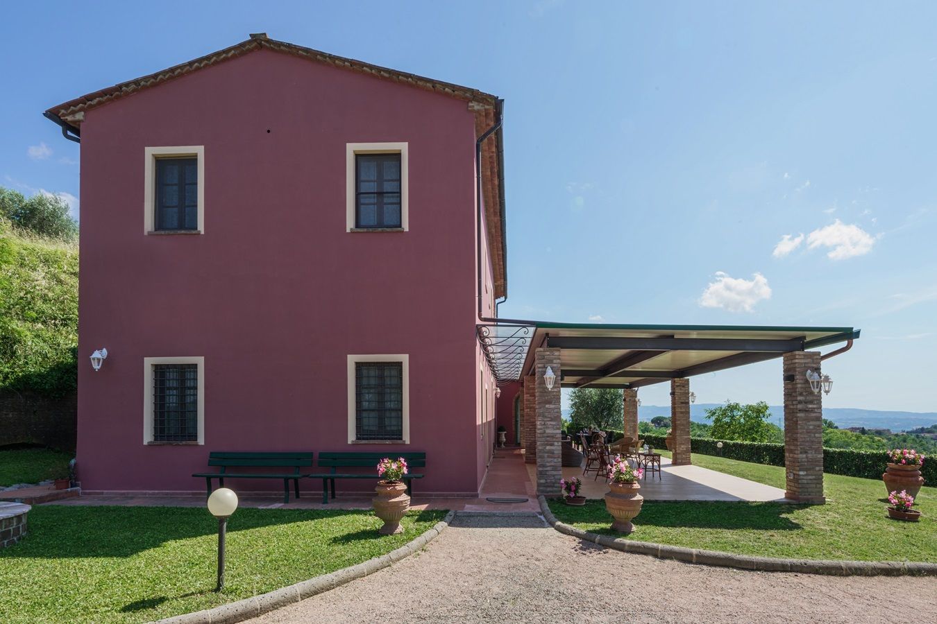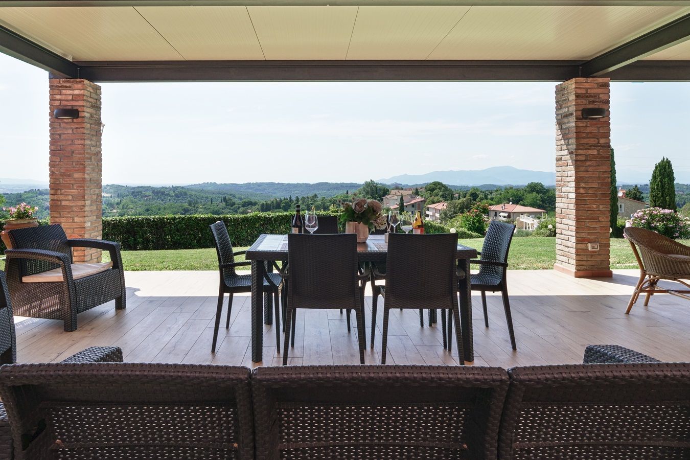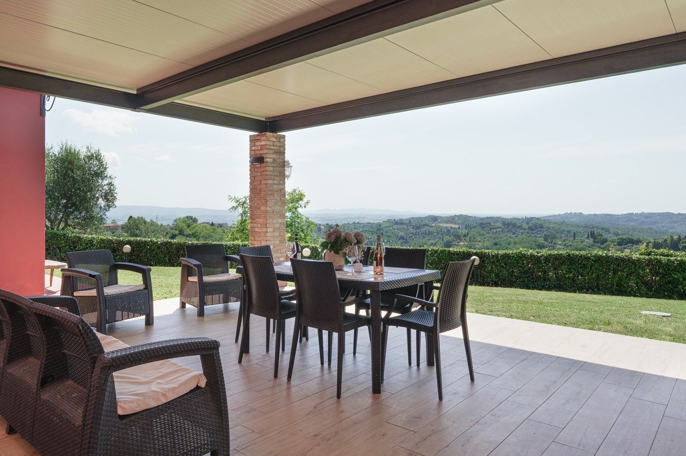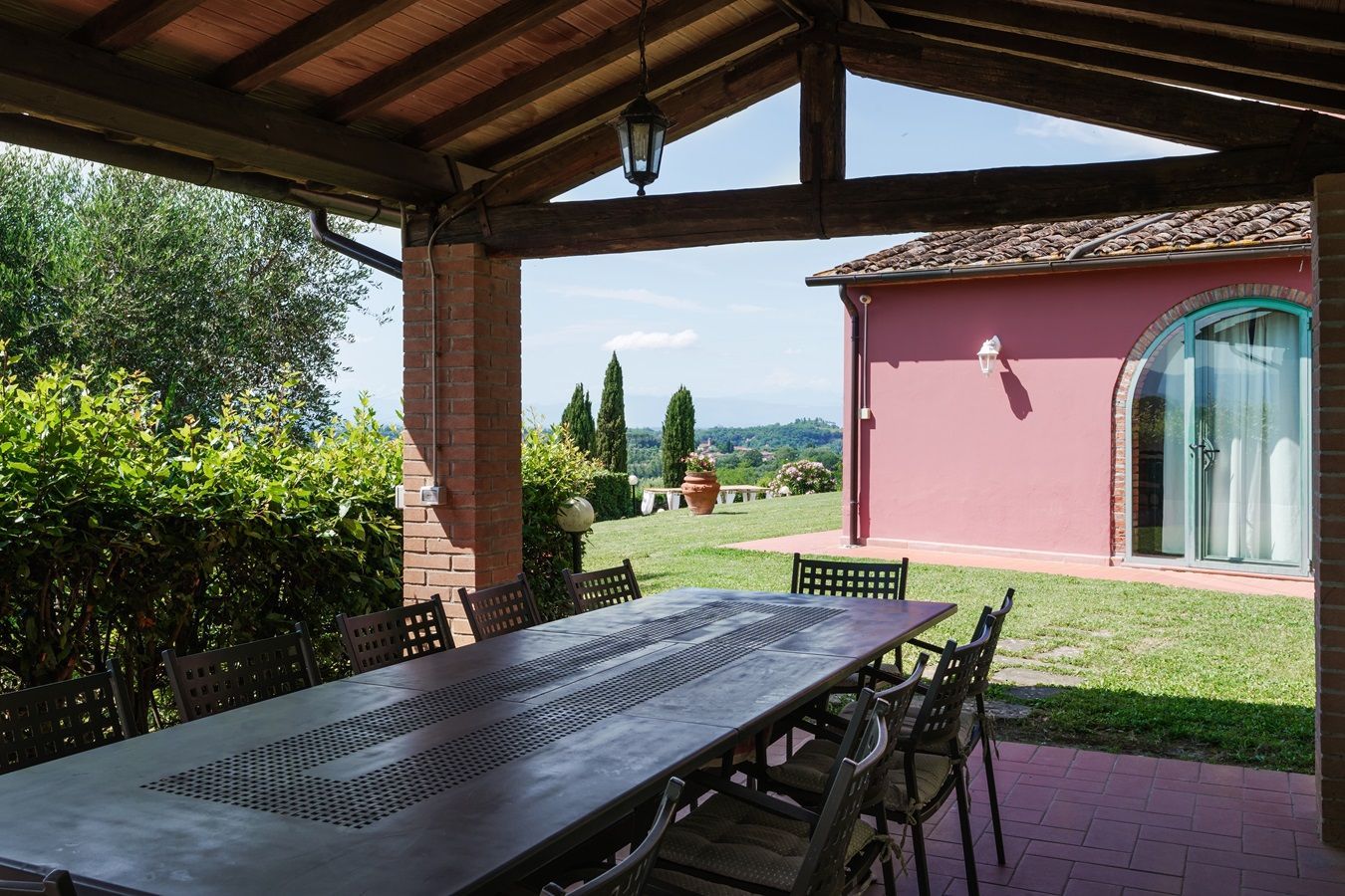 Auf einem kleinen Hügel thronend liegt Villa Sole, ein großzügiges toskanisches Landhaus, ruhig und in schöner Lage mit beeindruckendem Panorama. Zudem ist dieses herrlich angelegte Domizil, mit 5 Schlafzimmern und 5 angeschlossenen Badezimmern, plus großzügiger überdachter Aussenterrasse ausgestattet und somit für große Familien- und Freundesgruppen besonders attraktiv! Das Haus ist im einladenden toskanischem Stil eingerichtet, die Küche und Badezimmer bieten einen guten Komfort, zum Wohlfühlen!