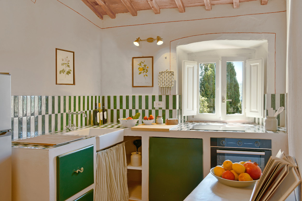Der Weiler wirkt wie aus dem Bilderbuch: hoch oben auf einem Hügel gelegen, mit einer einmalig schönen idyllischen “Piazza” –wo ein gutes Restaurant Frühstück, Mittag- und Abendessen anbietet und auch einige Außenbereiche (Tisch u Stühle) unserer Ferienwohnungen zu finden sind--, einer antiken Kirche, wo sonntags morgens noch die Messe gehalten wird--, einer Enoteca, die Weinverkostung mit Direktverkauf der guten Weine und Olivenöl anbietet und sehr viel mehr! Man erreicht den Weiler über eine kleine Landstraße und oben angekommen (350 m.ü.M.), bietet sich ein beeindruckendes Panorama über Wälder, Weinberge und Olivenhaine, soweit das Auge reicht.
