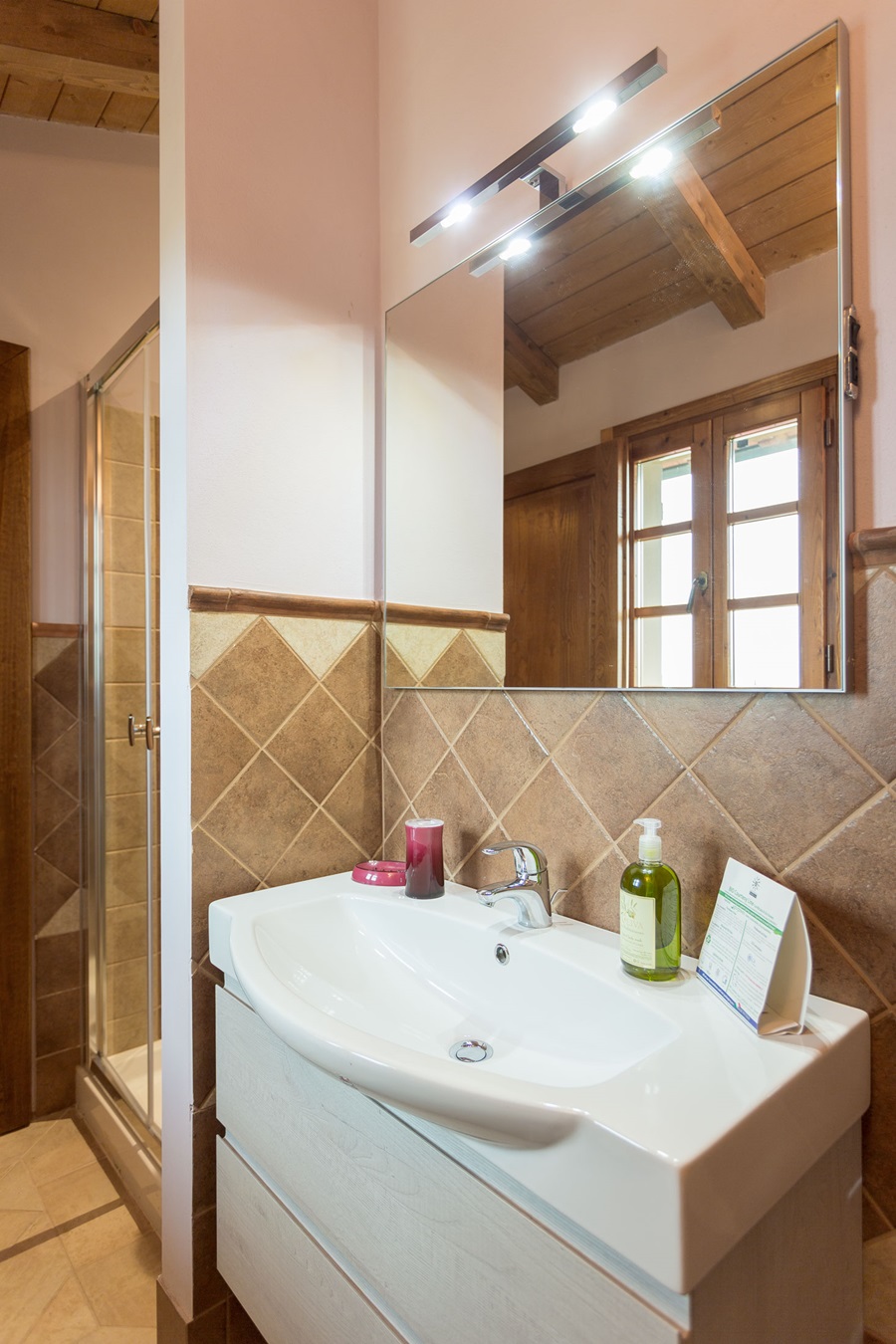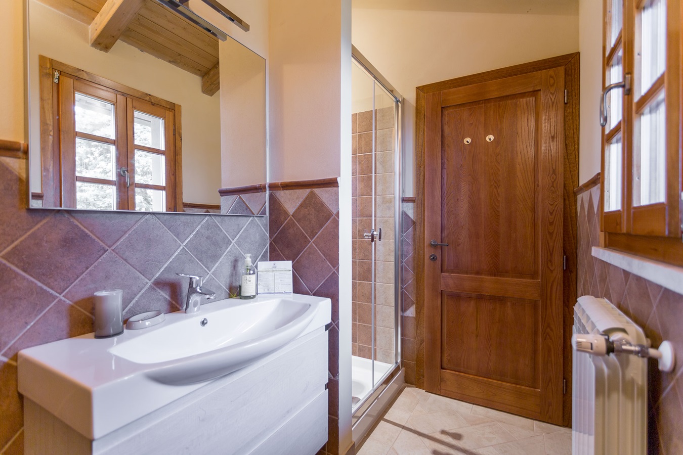 N.B.: kann auf Wunsch mit daneben liegendem Zimmer ULIVO verbunden werden und bietet somit für 4-6 Personen ausreichend Platz.