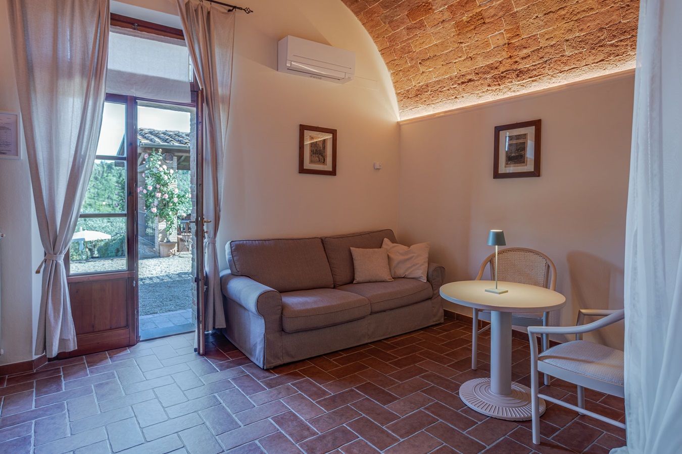 Im Erdgeschoss verfügen die Wohnungen über einen schönen Außenbereich (Tisch & Stühle), wo die Besitzer in den Sommermonaten ihre Gäste einmal die Woche mit einem Pizza-Abend oder einem toskanischen Menu verwöhnen.