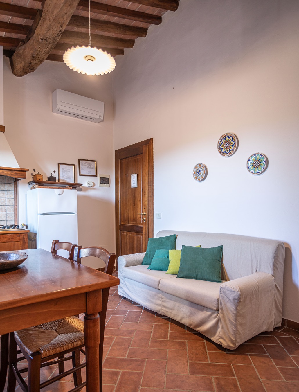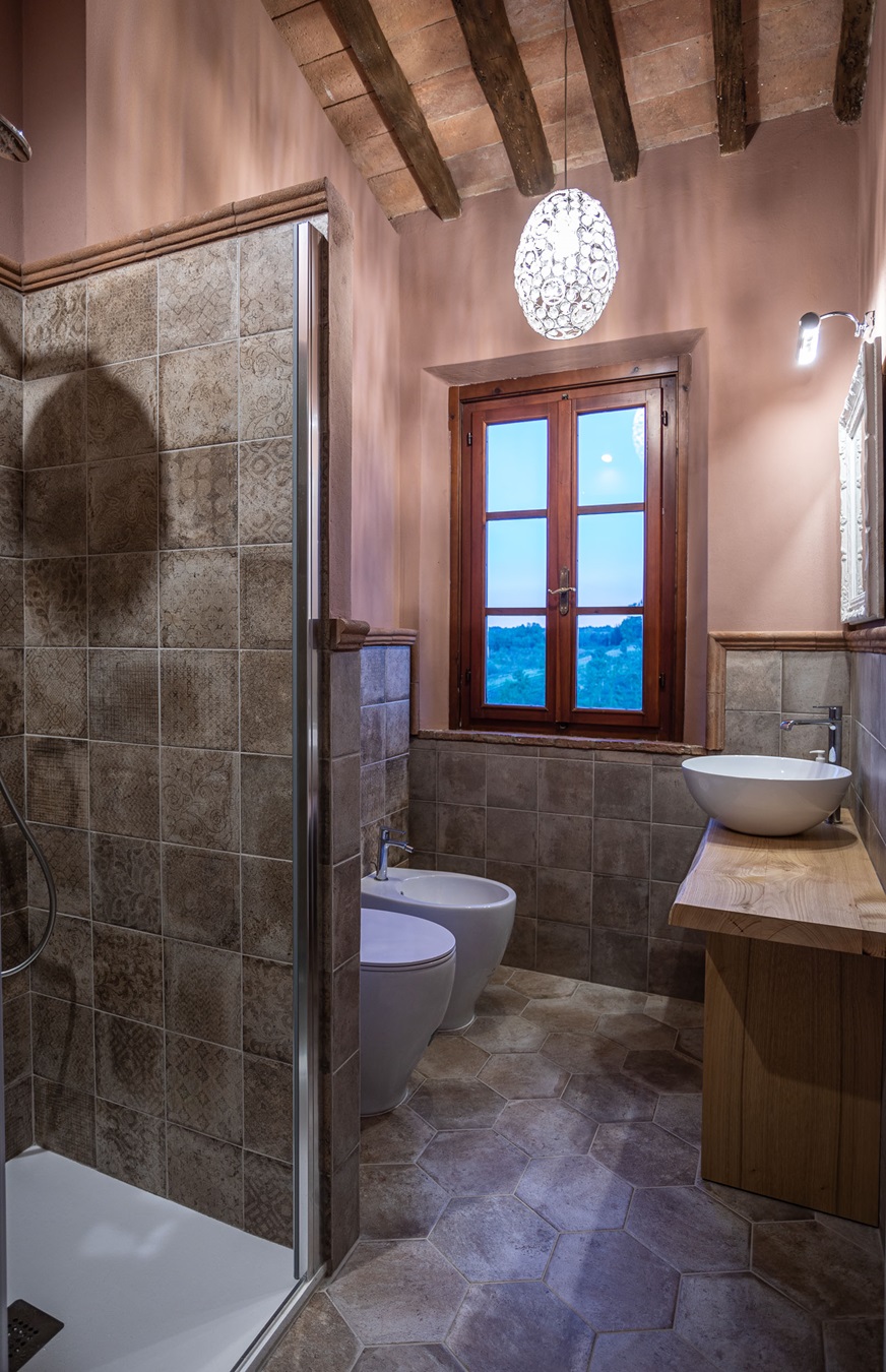 Fröhliche helle Farben sowie schöne Holzdecken geben dem Domizil die warme Atmosphäre, und man fühlt sich einfach wohl. Die gesamte Besitzerfamilie (3 Generationen) wohnt vor Ort und somit sind Service und persönliche Nähe hier selbstverständlich. Ein Stück wahrer toskanischer Gastfreundschaft! “La Casa Colonica” erstreckt sich über 80 Hektar Land und ist ein ECO WORLD Domizil; Solarenergie wird genutzt und es wurde in jeder Hinsicht umweltfreundlich konzipiert!