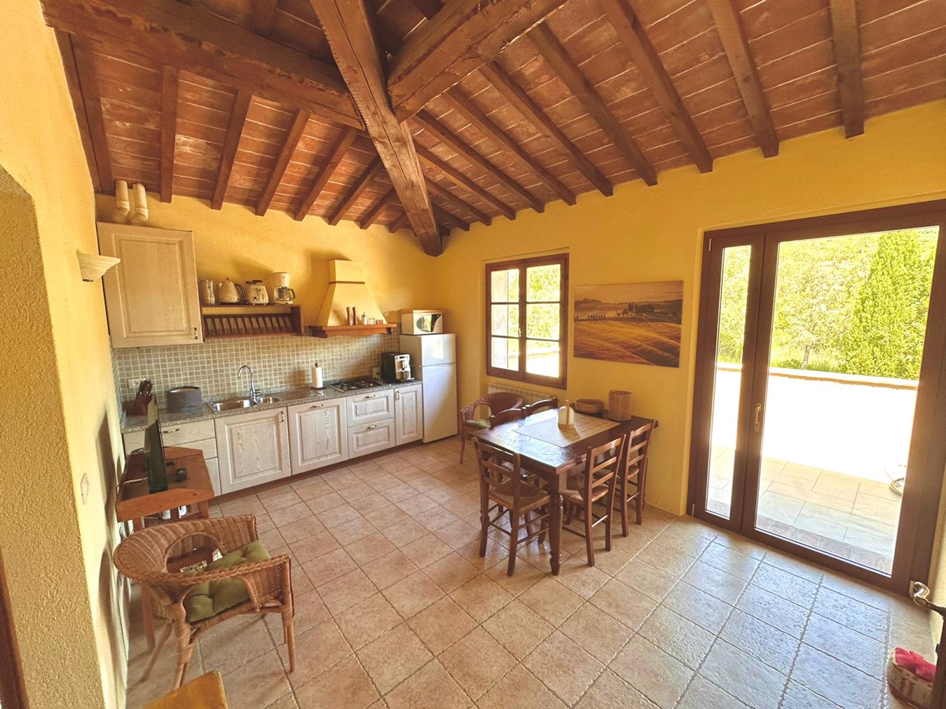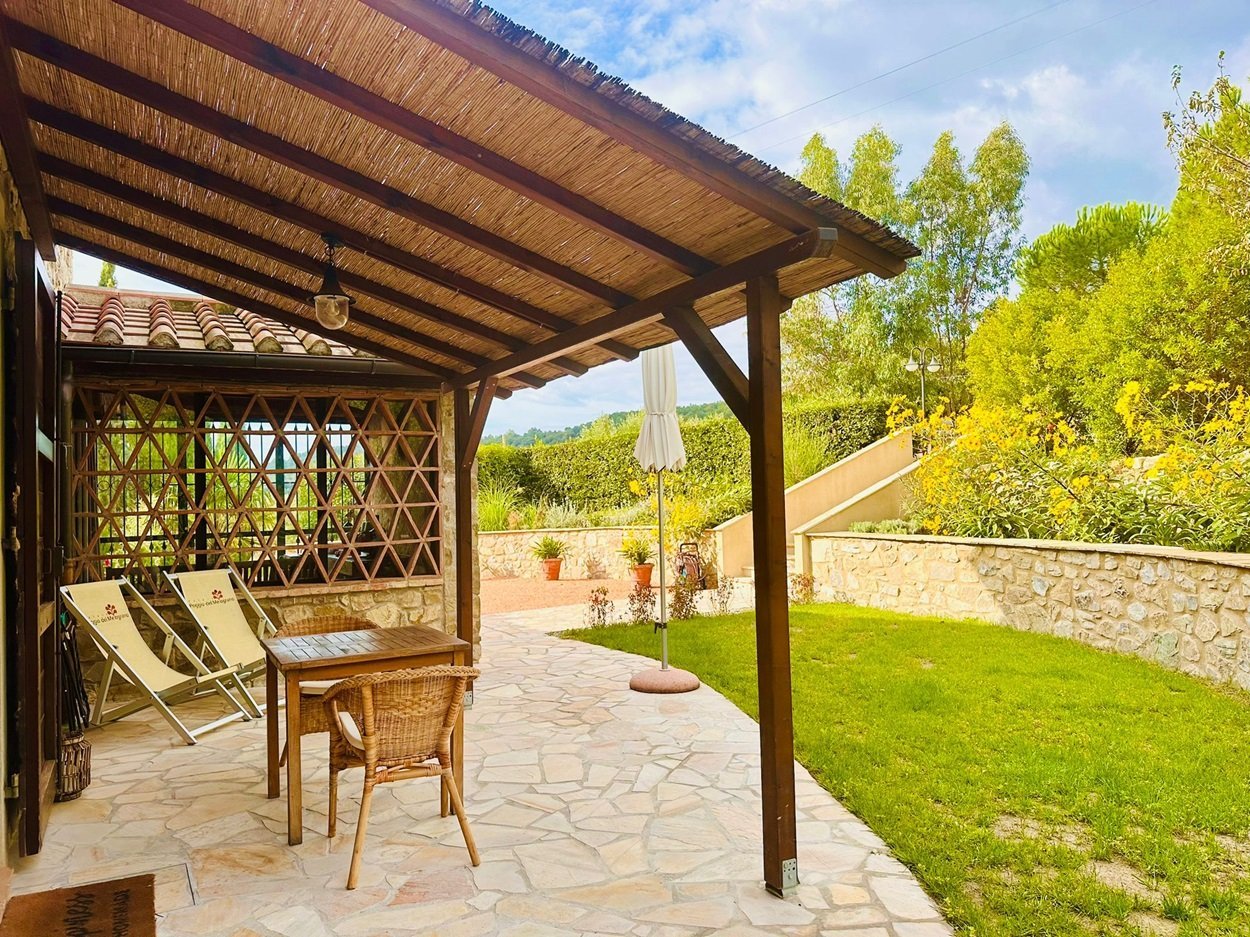 Eine Landresidenz wie aus dem Bilderbuch: heimeliges Ambiente, individuell und geschmackvoll gestaltet, absolute Alleinlage, in ca. 10 Minuten erreicht man einen reizvollen Ort und in ca. 30 Minuten das Meer! Ein kleines Paradies haben sich die aus Deutschland stammenden Besitzer vor wenigen Jahren hier geschaffen, alles ist sehr persönlich gestaltet, mit viel Liebe zum Detail, zum Wohlfühlen. Umgeben von einer bezaubernden, endlosen Hügellandschaft, bietet das Landgut 6 Ferienwohnungen, die idealerweise alle über einen Direktzugang zu einem privaten Außenbereich verfügen. Das Anwesen bietet ein sehr gepflegtes Ambiente, im Innenbereich sorgen Balkendecken und Bruchsteinmauern für den charakteristischen Toskana-Flair und auch die Badezimmer verdienen besondere Beachtung.