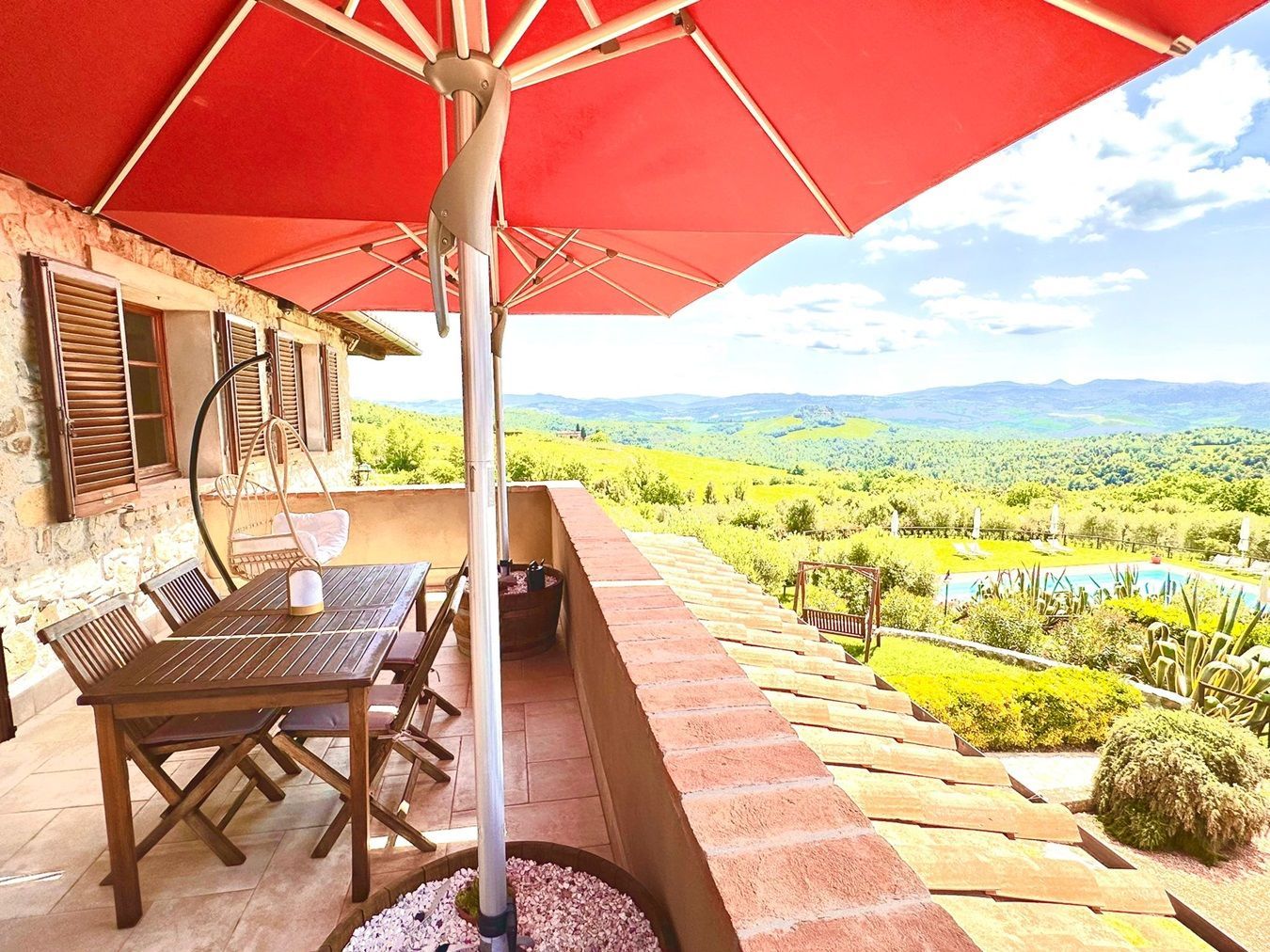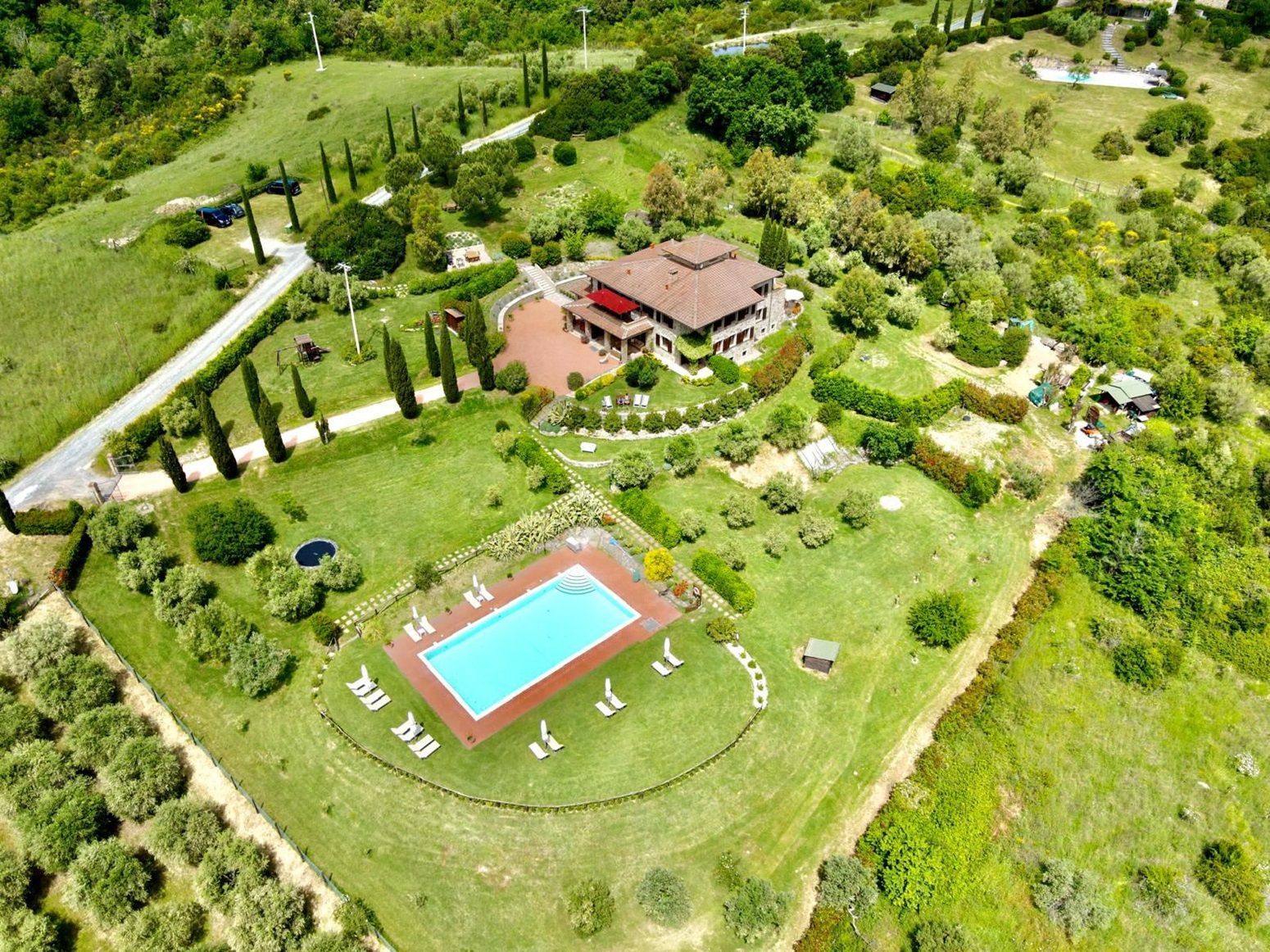 Ein ideales Feriendomizil für Familien mit Kindern, ein Spielplatzbereich mit (ebenerdigem) Trampolin tragen hierzu bei. Auch für wander- und fahrradbegeisterte Gäste ist Relais Campagna ein kleines Urlaubsparadies.... eine Oase der Ruhe und Entspannung. Das Landgut liegt in Alleinlage, umgeben von einer traumhaft schönen Hügellandschaft, und lädt zu ausgedehnten Spaziergängen ein. Ein schöner Grillplatz vermittelt italienisches Lebensgefühl und bietet den richtigen Rahmen für gemütliche Abende! Der großzügige Pool (16 x 9M.), mit weitläufiger Sonnenterrasse und privaten Außenbereichen (Sonnenliegen u. Sonnenschirm), liegt eingebettet in der herrlichen Gartenanlage, umgeben von Olivenbäumen und einem einmaligen Panorama.