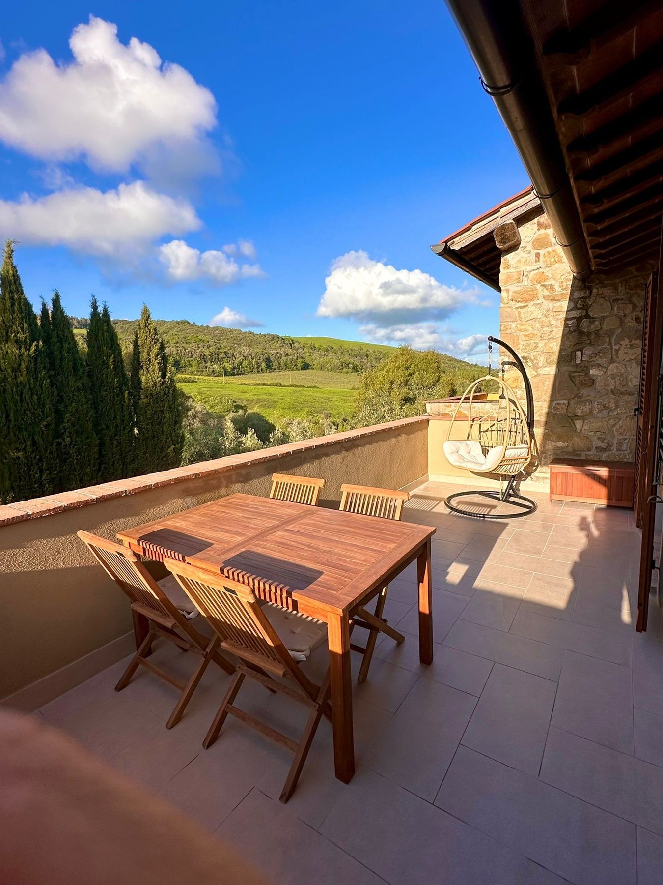 Die Vermieterin heißt ihre Gäste persönlich und herzlich in der einladenden kleinen Gäste-Lounge willkommen; hier werden auch regionale Produkte angeboten (Wein, Pasta, Olivenöl etc) und es besteht die Möglichkeit, einen Brötchen- und Einkaufsservice in Anspruch zu nehmen. Im nahegelegenen mittelalterlichen Ort gibt es 2 Restaurants, kleine Lebensmittelgeschäfte, Cafés etc. All dies sind die besten Vorraussetzungen für perfekte Ferientage! Besonders zu erwähnen ist auch die Tatsache, dass die An-und Abreisetage --außer im Juli /August-- frei nach Wahl erfolgen, dh nicht zwingend samstags. Kurzum, eine traumhaft gelegene Ferienresidenz: viel Platz, zauberhaftes Panorama, toskanisches Flair verbunden mit gutem Komfort.